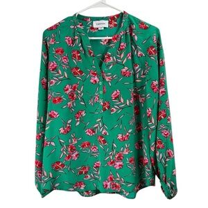 Yumi Kim Size Small 100% Silk Dandelion Emerald Floral Popover Top Long Sleeve
