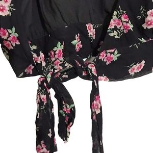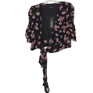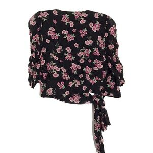 Brand new Yumi Kim Tie-Front Floral Crop Top. This floral print crop top is styled with a puff sleeve and fastened with a cute tie front detail. V-neck. Three-quarter puff sleeves. Elasticized cuffs. Pullover style. Button front with self tie.