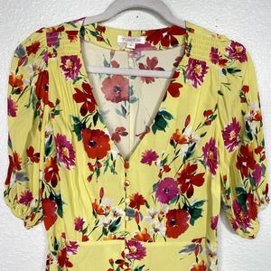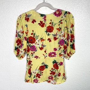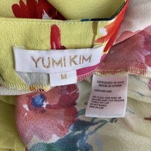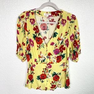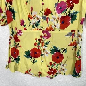 Yumi Kim Top Womens Medium Cloud 9 Floral V Neck Blouse Yellow Button Down