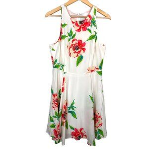 Yumi Kim White Rosebud Floral Happy Hour Silk Flare Dress Size L