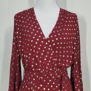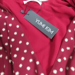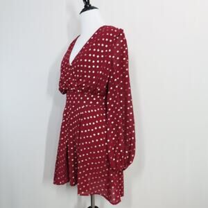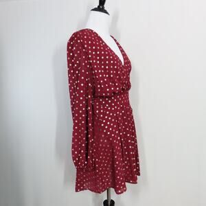 Yumi Kim Wine Hot Spot Heartbeat Mini Dress Surplice Neckline Long Blouson Sleeves Size Small