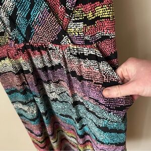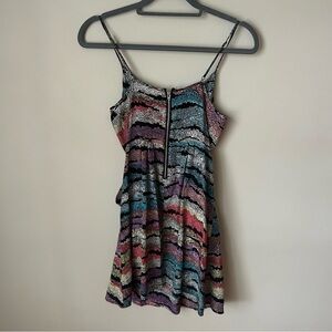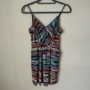 Yumi Kim Women’s 100% Silk V-Neck Multicolor Striped Mini Dress Size XS
