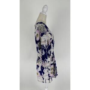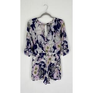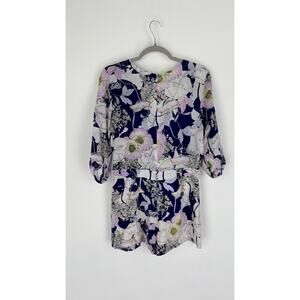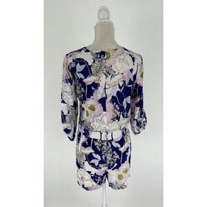 Yumi Kim Womens Bora Bora Navy Liz Floral Silk Romper Size Large Purple V Neck