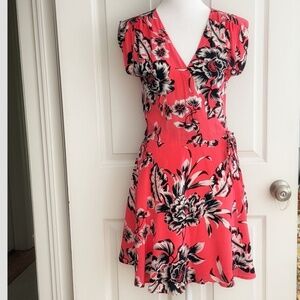 Yumi Kim Wrap Dress Silk Pink Black White Oversized Floral Pattern Short Sleeve