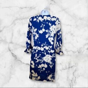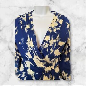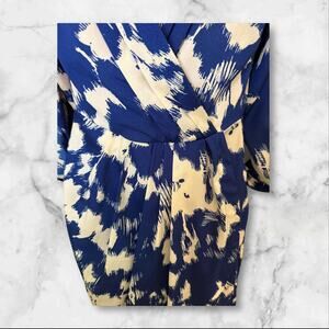 Yumi Kim XS Blue Ivory Abstract Print Wrap V-Neck Long Sleeve Mini Dress XS