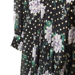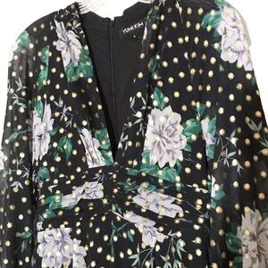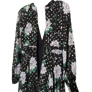New without tags Yumi Kim floral maxi dress. Black with white polka dots and all over floral print. Deep v neckline. Cuffed sleeves. Back zip closure.