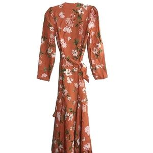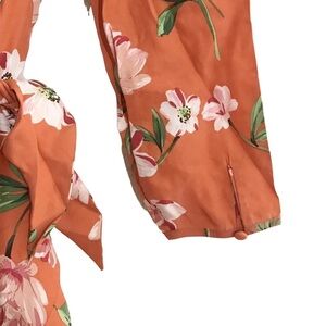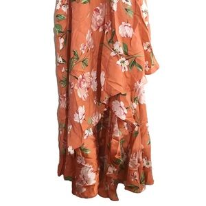Brand new Yumi Kim orange floral asymmetrical dress. V neck wrap style. Long sleeve design. Asymmetric semi high low design. Button cuffs.