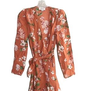 Yumi Kim orange floral long sleeve wrap asymmetric dress Size s NWOT