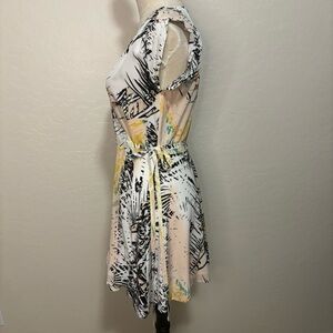 This Yumi Kim dress is in great condition! Short sleeve, v-neck, wrap style. Snap closure at chest. Skirt is lined. So pretty and feminine!