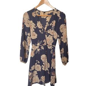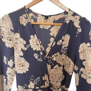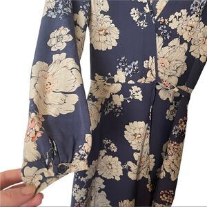 Color is bluish/charcoal grey with beige florals. Really beautiful color combination it just hard to capture in pictures.