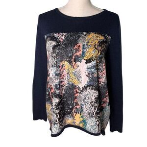 Yumi Knitwear Navy Tree Printed Jumper S