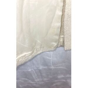 Gorgeous cream textured midi coat with 2 buttons and faux pocket detail. Slight stain on inside which has not been stain treated, could be resolved with treatment (see pictures). Elevate a date night, premier or work entrance with this stunning coat.