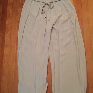 These versatile blush palazzo pants can be dressed up or dressed down, day or evening, any season pants. These palazzos have never been worn. Super soft, flowing crepe fabric, concealed side zipper and sash belt, with hidden pop of color on the inside band just for fun. They have the elegance of a long skirt but are pants. The size is UK 16, EU 44 US 10/12.