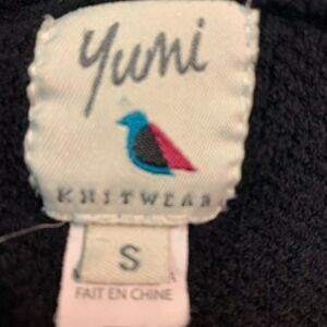 Yumi Knitwear Open Cardigan with Embroidered Peacocks on each side and two side pockets.