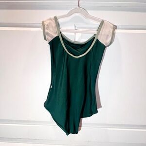 Yumiko Wendy leotard green with mesh sleeves Xsmall