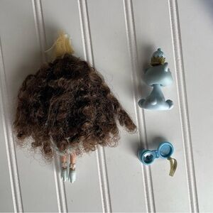 Includes original plastic bottle containers, Doll, pet, lipgloss (hole poked through seal used once) accessories