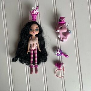 Includes original plastic bottle containers, Doll, pet, lipgloss (used once) accessories