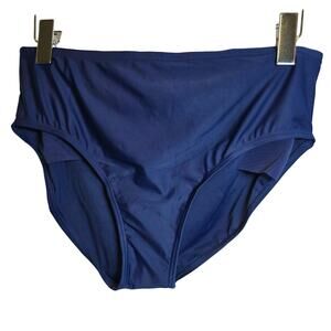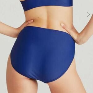 Yummie Gaia High Waist Bikini Bottom Swimsuit Sz 14 Navy Blue Modest Coverage