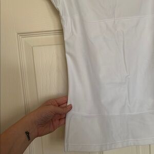 This sleek white shapewear is designed with a fitted silhouette and delicate spaghetti straps, offering a timeless and versatile style. Its smooth, solid fabric makes it an ideal choice for layering under clothes and is adjustable.