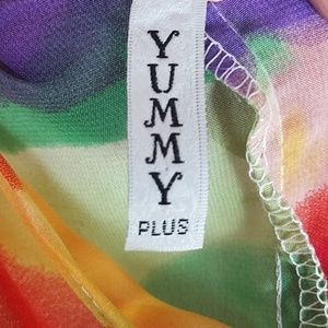 Yummy, 1-2, Vibrant Multi color, off the shoulder top, High low length, size plus