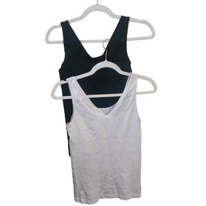 Yummy Boyfriend Tank Shapewear Set Of 2, Size M/L. Pit to pit 16", shoulder to hem 23", Round Neck Front, V Neck Back, Panel Shapewear, Heather Thomson, Retail $34 each. Good Pre-Owned Condition