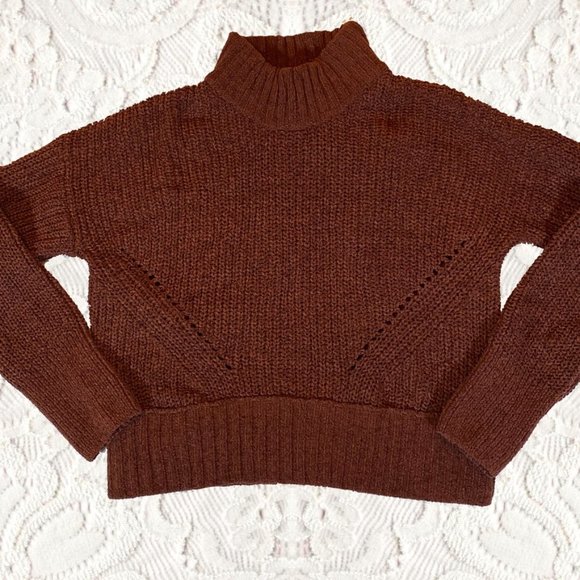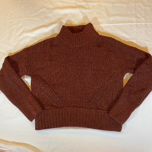 Yummy Chocolate Brown Pink Rose high neck cropped sweater Size Small