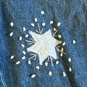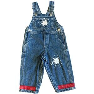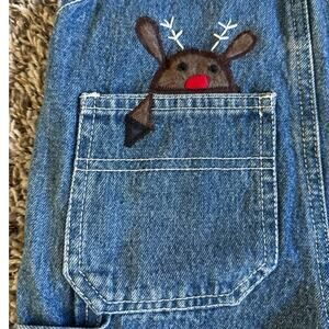 Yummy Kids Upcycled Denim Embroidered Winter Reindeer Snowflake Overalls Size 2T