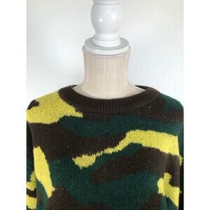 This sweater is a winter must, it is stylish and cozy. It features drop-shoulder sleeves and a crew neck. Ribbed cuffs and hemline. It is an oversized fit so it is perfect for layering. It has a boxy cut with a cropped cut. It is a modern take on the camouflage print and it does not disappoint. New with tags, no rips, stains, or damage.