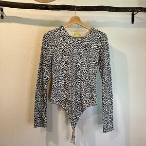 Yummy Sweater Co White/Black Animal Print Soft Cotton Bodysuit Size Large