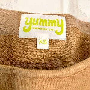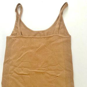 Yummy Sweater Co. Women’s Tan Shoulder Strap Fitted Soft Sweater Bodysuit