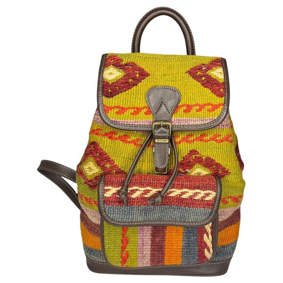 Yun Art Kilim Traditional Turkish Backpack Woven Carpet Leather Yellow