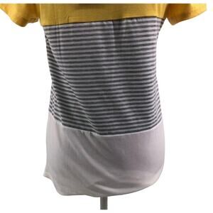 YunJey Yellow Gray White Tri Color Block Stripe Short Sleeve Top Plus 2XL Womens