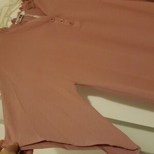 YUNA FASHION S/M This is a dusty pink blouse with a ruffled collar and button-down front. It has 3/4 length sleeves and a relaxed, cropped fit.