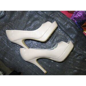 Yunnis Blush Patent Leather Peep Toe Platform Stiletto Pumps size 7.5 by CANDIES