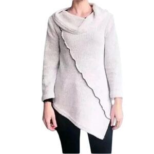 Yushi Asymmetrical Cowl Neck Oatmeal Beige Cotton Blend Women’s SZ M #2259