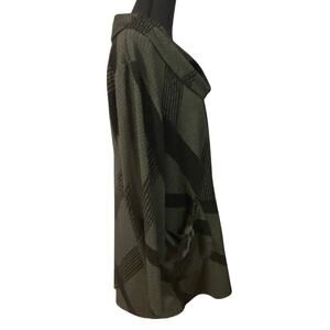 Yushi Lagenlook Asymmetrical Tunic Top Green Black Cowl Neck Pocket Medium Large