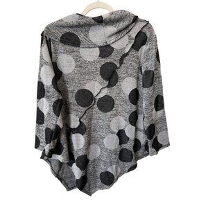 Yushi Polka Dot Asymmetrical Sweater Women Medium Gray Black Polyester Cozy Knit
