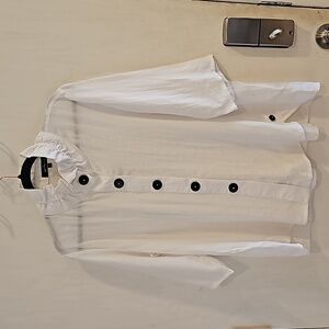 Yushi White Button Up Shirt Swing Jacket M Like New