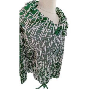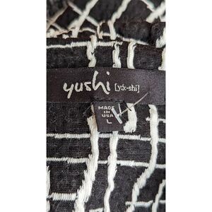 Yushi Women Black Two Button Front Textured Plaid Jacket Size Large