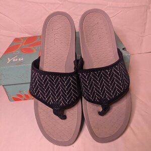 Very gently used like new Yuu women's sandals size 8.5 navy top and platform cream/grey color base. Very cute and comfortable, only worn once as seen by soles but platform tops have no wear signs, great pair of fashion sandals!