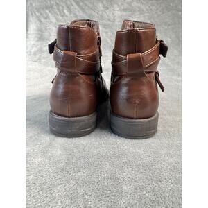 Yuu Woman’s Calissa Vegan Brown Boot w/ Straps & Buckle Details Size 6.5W WIDE
