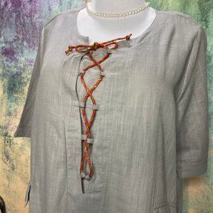 ๐Yuzao Cotton 3/4 Sleeves Dress - Tunic with Decorative Lace Up
