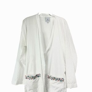 Yves Delorme Paris 100% cotton swiss dot embroidered robe Size M white