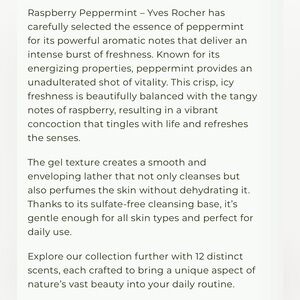 Revitalize with Yves Rocher's refreshing shower gel. Infused with raspberry and peppermint for an invigorating cleanse.