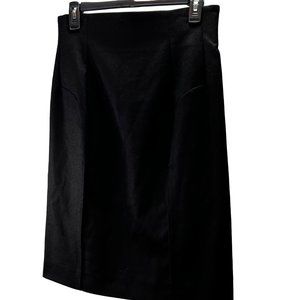 Yves Saint Laurent 2008 Fall Winter black wool skirt. 100% Lana wool. Back zipper, vertical seaming and unique seaming at the hips, back center slit. Good condition. Size tag missing but see measurements below.