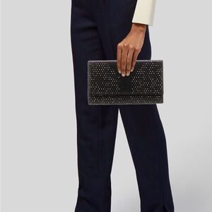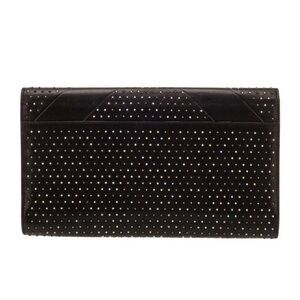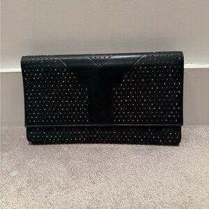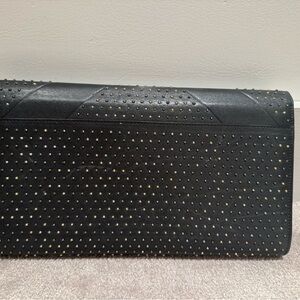 Chic black clutch adorned with gold and silver studs. Stylish and versatile. The only thing that’s faded is the brand name but it is a YSL original.