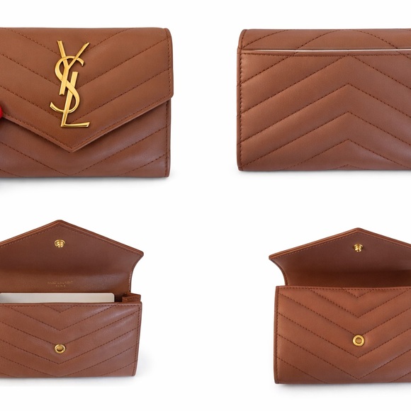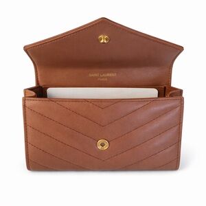 Brand new - Yves Saint Laurent Cassandre envelope wallet in soft Napa leather. Features chevron quilted design and iconic logo. Ideal for stylish organization. Box and dust bag included