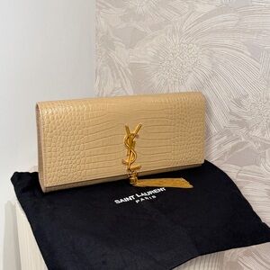 Yves Saint Laurent Beige Crocodile Embossed Clutch