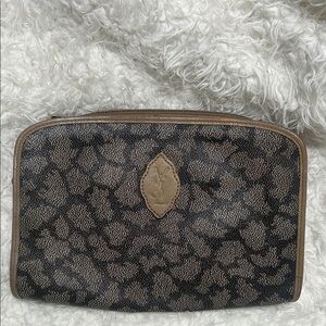 Yves Saint Laurent Beige Leather Clutch with Gold Logo