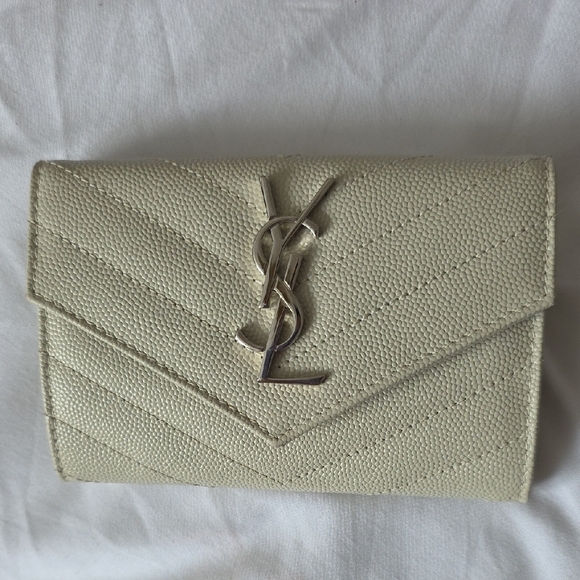 Chic Yves Saint Laurent small wallet with textured design. Features iconic logo detail. Ideal for stylish essentials, cards, hair ties, etc! amazing condition!